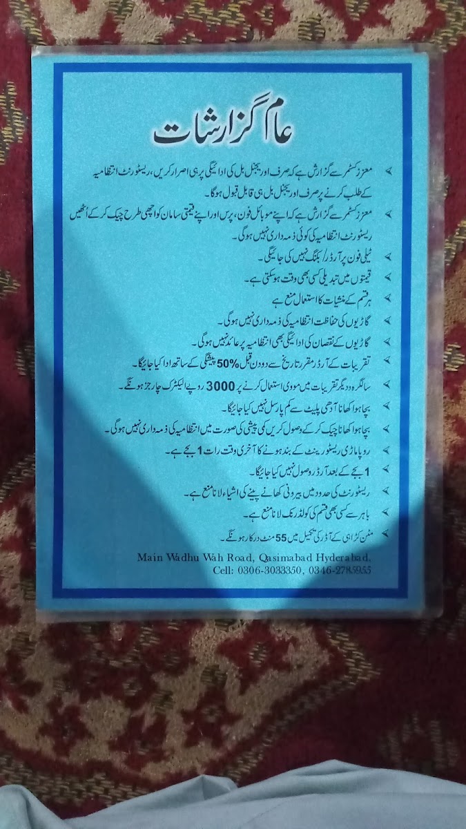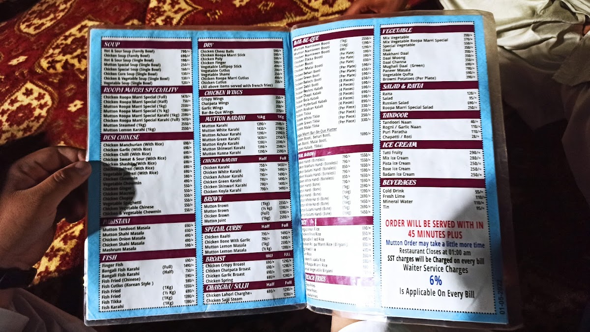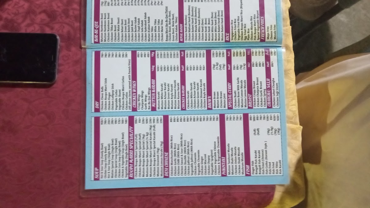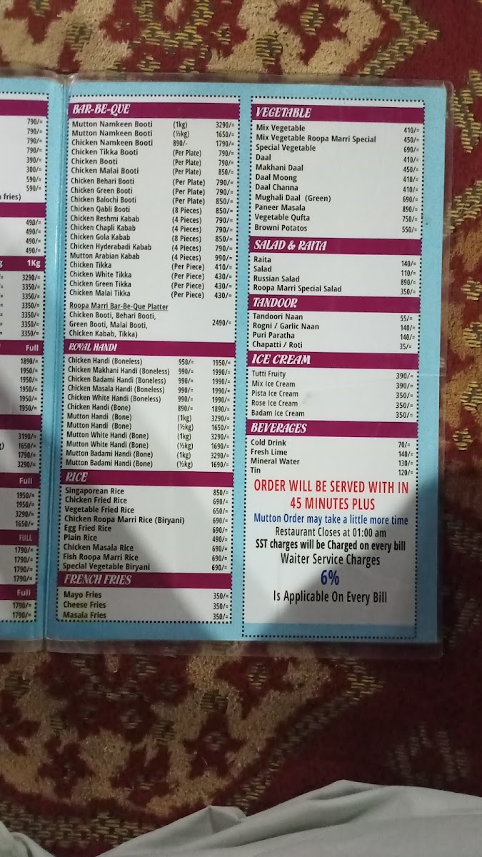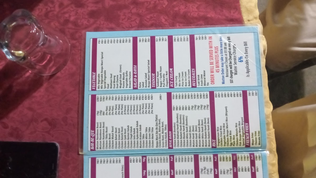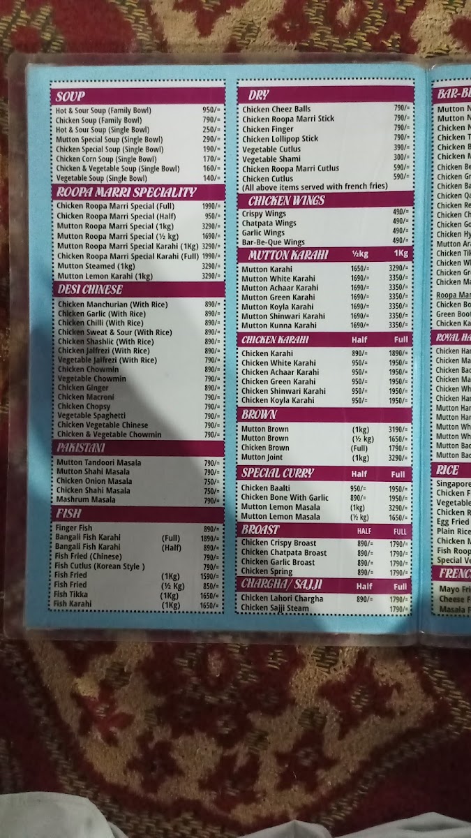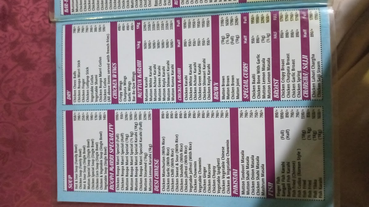 Roopa Marri Restaurant & Marriage Garden روپاماڑی ریسٹورنٹ اینڈ شادی ہال Menu